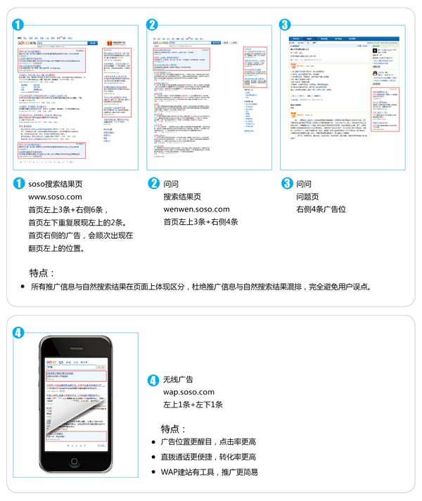 ·腾讯效果推广无线搜索广告拥有包括无线搜搜、手机腾讯网、手机QQ空间、QQ浏览器、手机QQ、联盟搜索等各种给力入口,具有天然的入口优势和巨大的增长潜力,为您提供一种新型的广告推广平台,帮您获取更多的广告展示机会,吸引更多的潜在用户获取更多的订单;